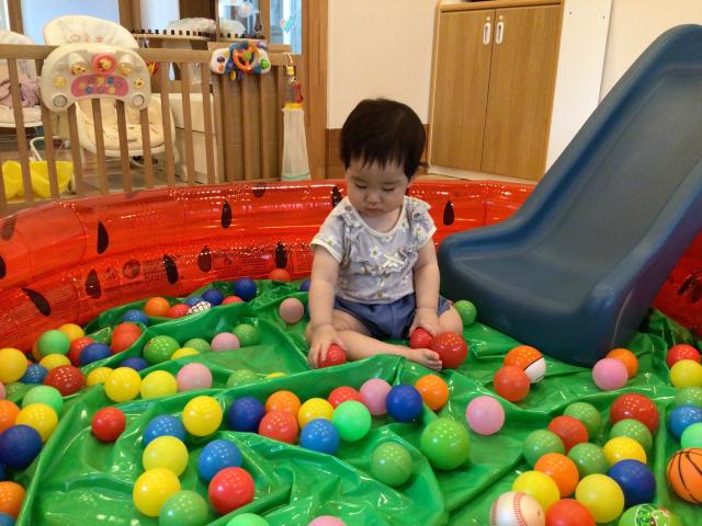 滑り台付きのボールプールに入って遊んだり、マットを登って身体を動かしたりして元気に遊んでいました!!