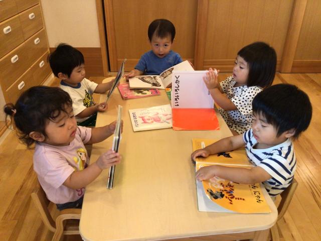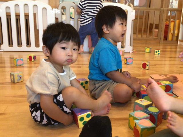 牛乳パックで作られたキューブを積み重ねたり、上手に椅子に座りお友達と一緒に絵本を読んで過ごしていましたよ♪
