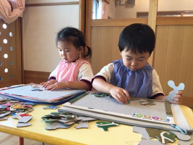 お部屋でも色んな遊びをしたり、天気のいい日は水遊びをして楽しく元気に過ごしている園児さん達です♪
