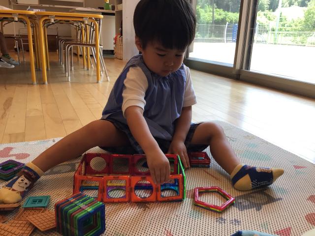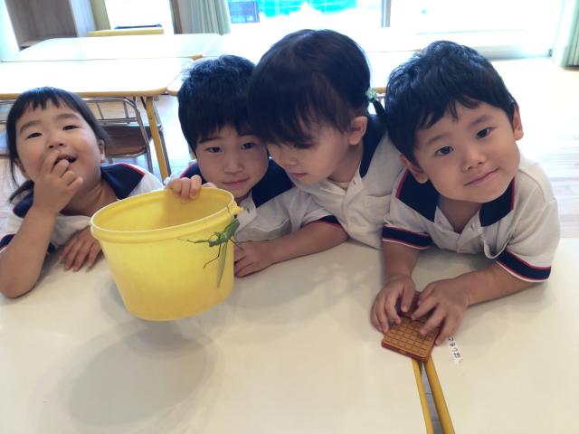 先生がカマキリを見つけたようでお部屋の中でみんなで観察をしたり、集中してマグネットの玩具でマンションを作っていました!カマキリと一緒にはいちーず⭐︎